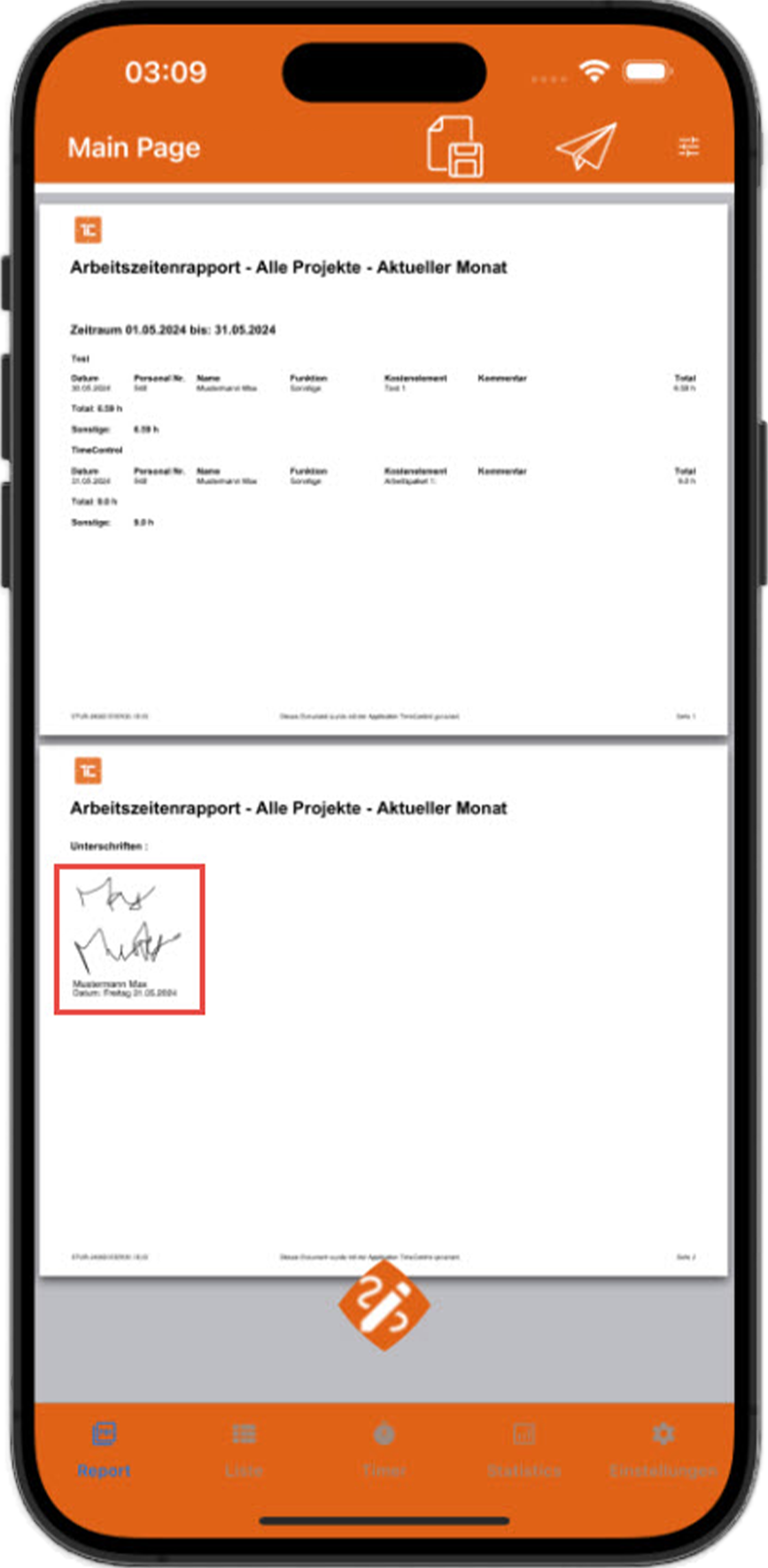 Nun ist der Arbeitszeitenrapport unterschrieben und kann nicht mehr verändert werden: