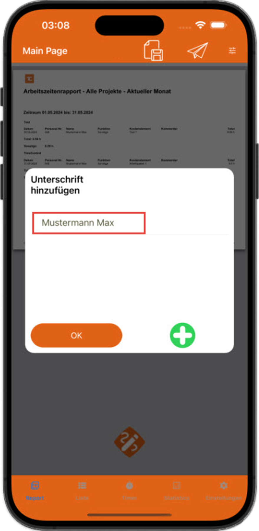 Arbeitszeitrapporte können schriftlich unterzeichnet werden, damit die Richtigkeit sichergestellt werden kann. Jene Rapporte welche unterschrieben worden sind, können nicht wieder bearbeitet werden.