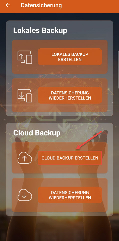 Dort wählen Sie den Button "Cloud Backup erstellen":