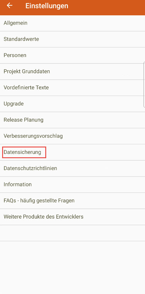 In den Einstellungen wählen Sie den Reiter "Datensicherung" an: